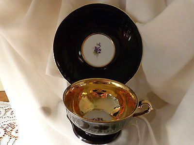 Royal Heildelberg "Winterling" Black & Gold Tea Cup & Saucer
