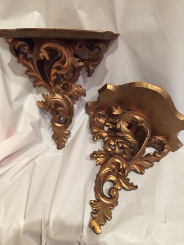 Title (ebay affiliate link): PAIR ANTIQUE ITALIAN ROCOCO GOLD LEAF WOOD CARVED ACANTHUS LEAF WALL SHELF