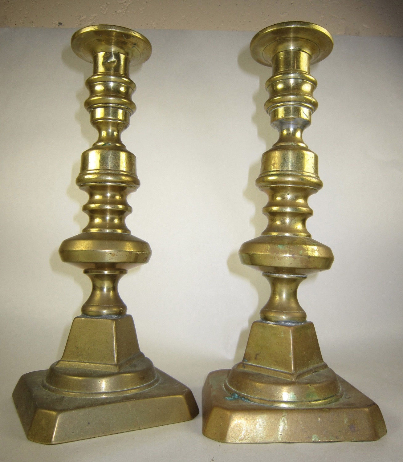 Title (ebay affiliate link): Antique 1850s Mid-19th Century Pair of Tall 10.125" Brass Push Up Candlesticks