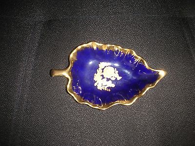french cobalt blue gold gilt porcelain trinket dish leaf france limoges