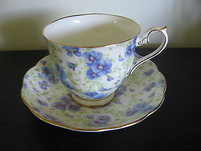 Royal Albert Blue Pansy Flower Chintz China Teacup & Saucer