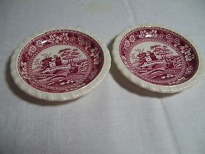 ANTIQUE COPELAND RED TRANSFERWARE PAIR BUTTER PATS SPODE'S TOWER PATTERN c1880's