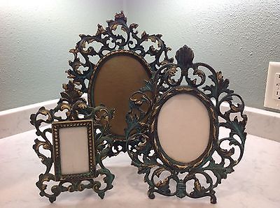 Set of three ornate verdigris green metal picture frames