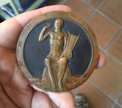 Title (ebay affiliate link): GORGEOUS ART DECO 1953 PRO MUSICA UNESCO BELGIAN BELGIUM BRONZE MEDAL BY RAU