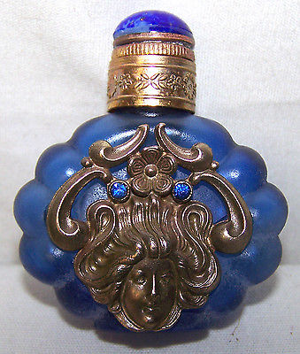 Title (ebay affiliate link): VINTAGE CZECH PERFUME BOTTLE - FROSE COBALT BLUE glass with ART NOUVEAU LADY