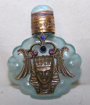 Title (ebay affiliate link): VINTAGE CZECH PERFUME BOTTLE - FROSE AQUA glass with EGYPTIAN REVIVAL