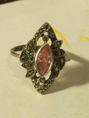 ANTIQUE SILVER RING PINK STONE 6-7