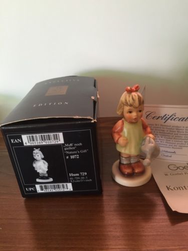 Title (ebay affiliate link): 1996 Hummel "Nature's Gift" # 10723 9.5 cm. 3 3/4" Figure W/ Box And Certificate