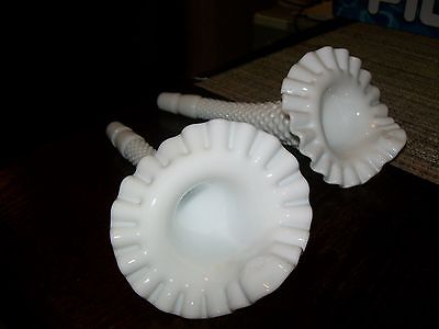 MILK GLASS HOBNAIL STEMS FOR MILK GLASS JACK IN THE PULPIT ,BOWL/VASE 2 HORNS