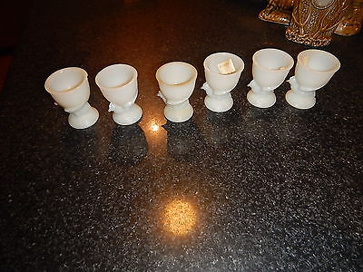 Set of 6 old milk glass opaque egg cups Made in France labels old estate chicken