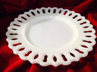 Vintage Milk Glass Plate With RARE Lace Edge