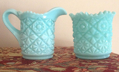 Blue Milk Glass Diamond Point Sugar & Creamer