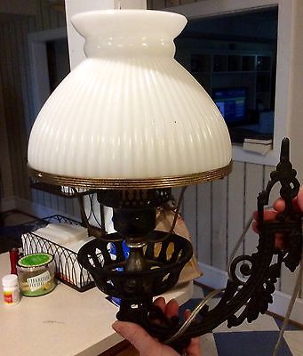 Vintage Cast Iron Swivel Wall Lamp With Milk Glass Shade
