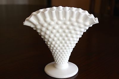 Title (ebay affiliate link): Vintage Fenton Hobnail White Milk Glass Ruffled Fan Vase 6" Tall