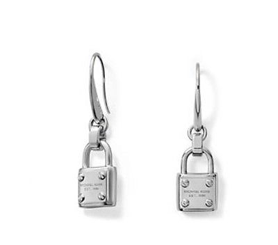 Title (ebay affiliate link): New MICHAEL KORS Silver Tone Padlock Logo MK Drop Earrings