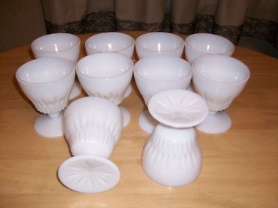 MILK-WHITE FOOTED DESSERT CUPS OLD MILK GLASS