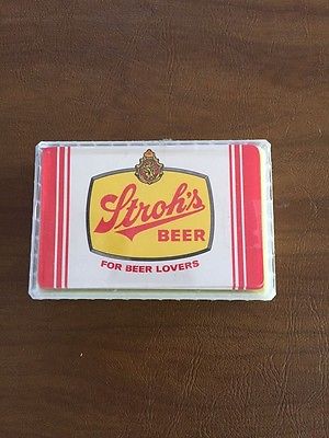 Title (ebay affiliate link): STROH'S BEER PLAYING CARDS IN PLASTIC CONTAINER HAS BEEN OPENED RED/WHITE/YELLOW