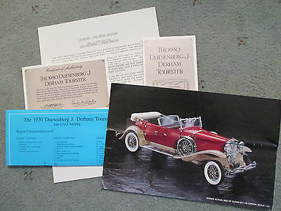 1930 DUESENBERG J Derham Tourster Brochures by Franklin Mint