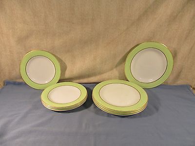 8 Piece Set of Vintage Pyrex Milk Glass Green Rim Salad & Dinner Plates