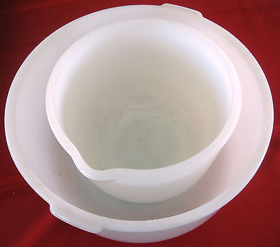 SET OF 2 VINTAGE WHITE MILK GLASS MIXING BOWLS MADE FOR SUNBEAM MIXMASTER