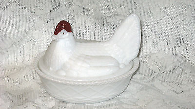 Westmoreland Milk Glass Hand Painted Red Comb Hen On Nest Pattern Covered Dish