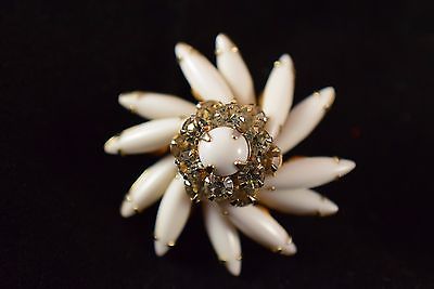VINTAGE BEAUTIFUL MILK GLASS NAVETTES &CRYSTAL CLEAR RHINESTONES BROOCH LOT# 571