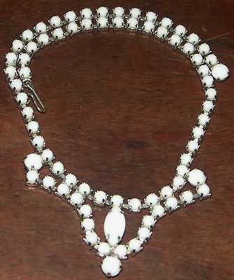 Hi End Unsigned Beauty White Milk Glass Rhinestone Necklace 14 1/2"