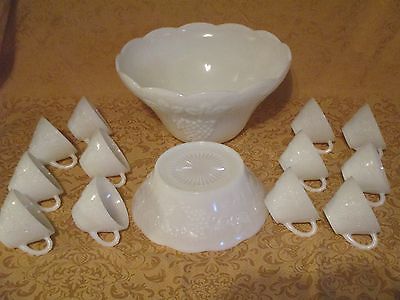 Title (ebay affiliate link): Vintage Milk Glass Punch Bowl Set on Base with 12 Cups - Unknown Maker Grapes