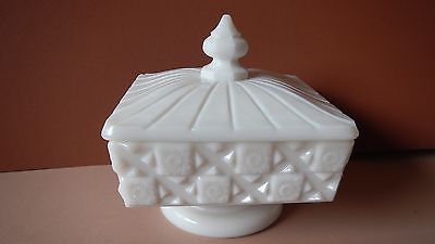 Title (ebay affiliate link): Westmoreland Square White Milk Glass Covered Candy Dish Old Quilt Pattern