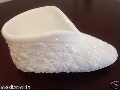 Title (ebay affiliate link): Fenton Milk Glass Old Virginia Glass Slipper Baby Bootie Shoe Button Daisy