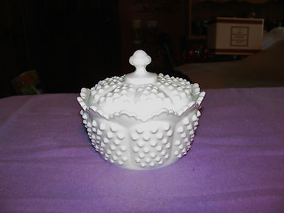 Title (ebay affiliate link): VINTAGE FENTON WHITE MILK GLASS HOBNAIL DISH WITH LID & SCALLOPED RIM - MARKED