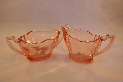 PINK GLASS CREAM & SUGAR PG03