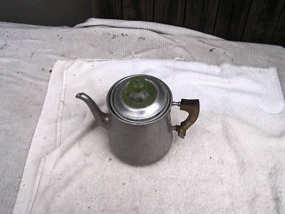 Title (ebay affiliate link): Aluminium Coffee Pot with Green Depression Glass Top