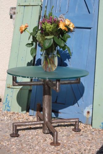 Vintage Industrial Inspired Table Up-Cycled Coffee Table Steel Glass Retro Chic