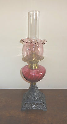 Title (ebay affiliate link): VINTAGE CRANBERRY GLASS LAMP WITH CAST IRON BASE, LIGHTING, ANTIQUE, EXC, COND