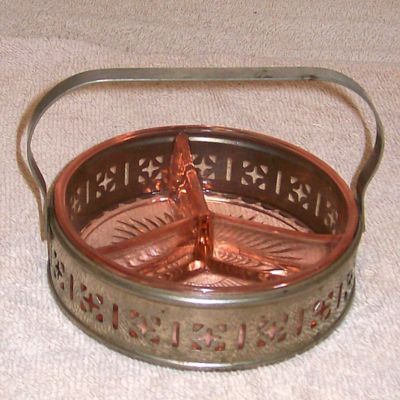 Title (ebay affiliate link): PINK DEPRESSION 3-WAY DIVIDED CANDY DISH IN METAL CARRY