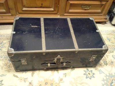 Title (ebay affiliate link): Vintage Shwayder Trunk Co. Dark Blue Steel Veneer Steamer Trunk w/ Inner Tray