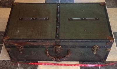 VTG ~ Antique ~ Army Green ~ TRUNK Foot Locker ~ Metal Outside Lining Inside SEE