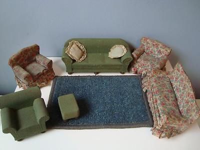 Title (ebay affiliate link): Antique Miniature Dollhouse Furniture GERMAN Upholstered Green Flocked Blue Rug