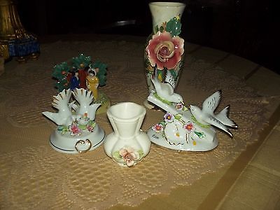 Title (ebay affiliate link): 5 VINTAGE CAPODIMONTE FLOWER LOT Vases, bird figures, and one staffordshire