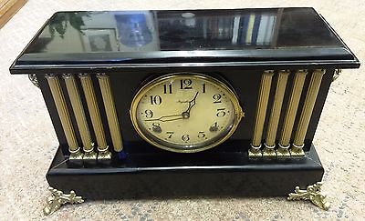 Antique Ingraham Black Mantle Clock - Works - FC - Fast Shipping!