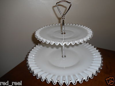 Title (ebay affiliate link): VTG. MILK GLASS SILVERCREST TIDBIT 2 TIER DESSERT TRAY DISH