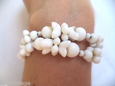 Title (ebay affiliate link): UNIQUE VINTAGE ESTATE GOLD TONE WHITE MILK GLASS BEADED STRETCH BRACELET!! 3088N