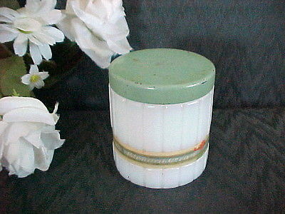 VINTAGE ARMAND ART DECO ERA MILK GLASS FACE BLENDED CREAM JAR ORIG. LID & A
