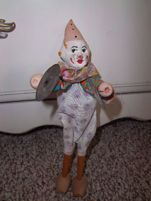 Vintage Antique Wood Clown Doll Clapping Cymbals
