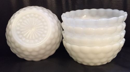 Title (ebay affiliate link): 5pc Vintage Fire King Anchor Hocking White Bubble Milk Glass Berry Bowls - EXC