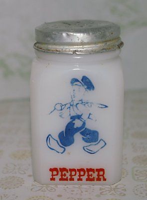 Title (ebay affiliate link): Vintage Dutch milk glass boy salt & pepper shaker McKee metal lid