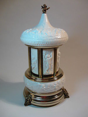 Vintage Reuge Capodimonte Porcelain Carousel Musical Cigarette Lipstick Holder