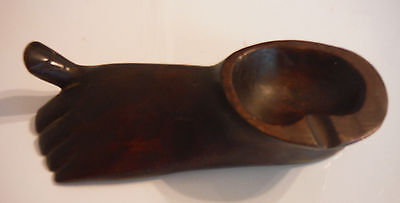 ** Antique**Primitive Hand Carved Bare Foot Wooden Pipe Rest Ashtray Folk Art 6"