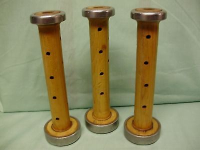 3 VINTAGE WOOD MILL SPOOLS BOBBINS STEEL ENDS 7 1/4 INCHES TALL